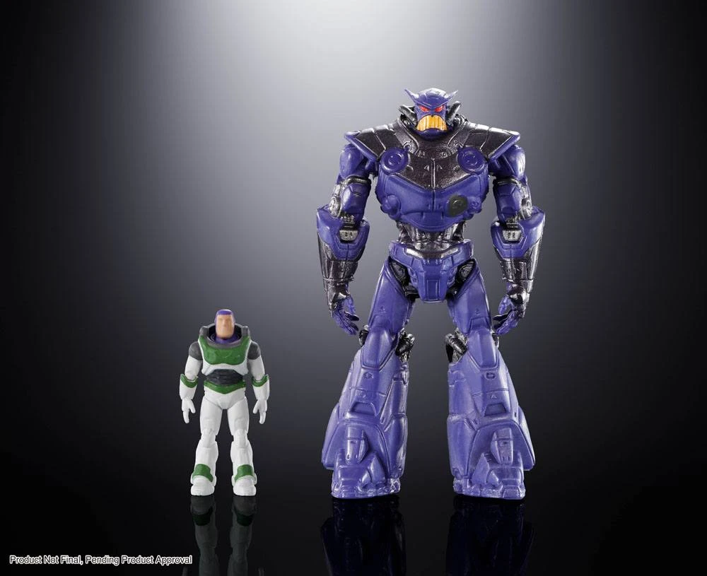 La nave mide viene además con el tren de terrizaje y dos figuras, la de Buzz Lightyear y la de Zurg.