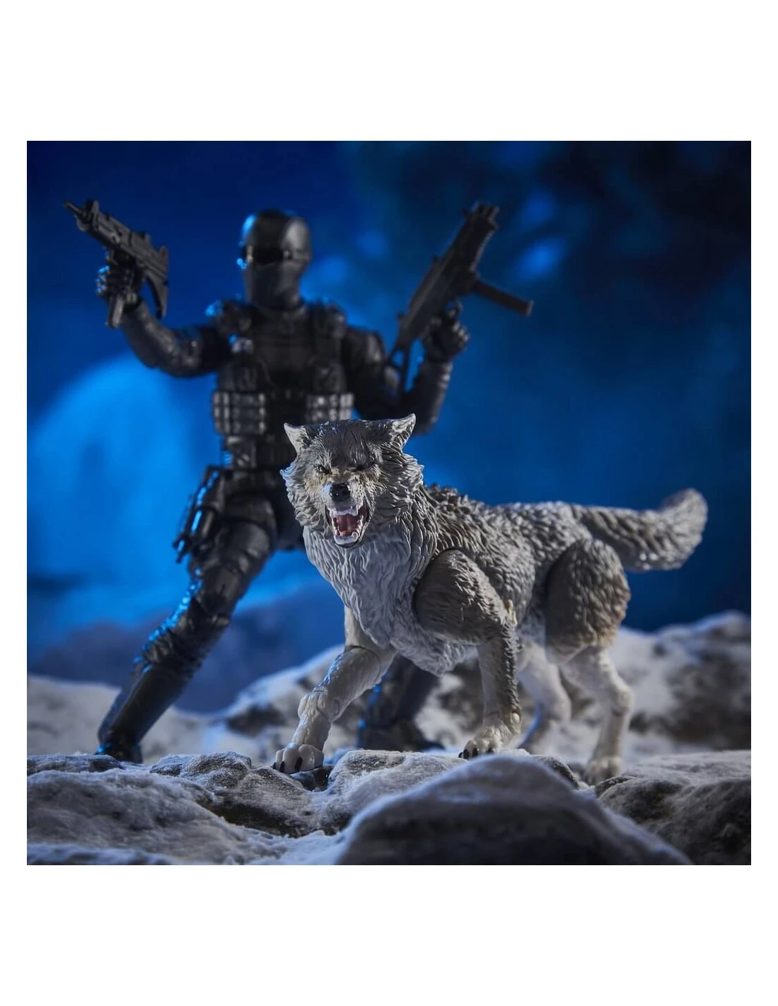 El set consta de las figuras de Snake Eyes y el perro lobo Timber.