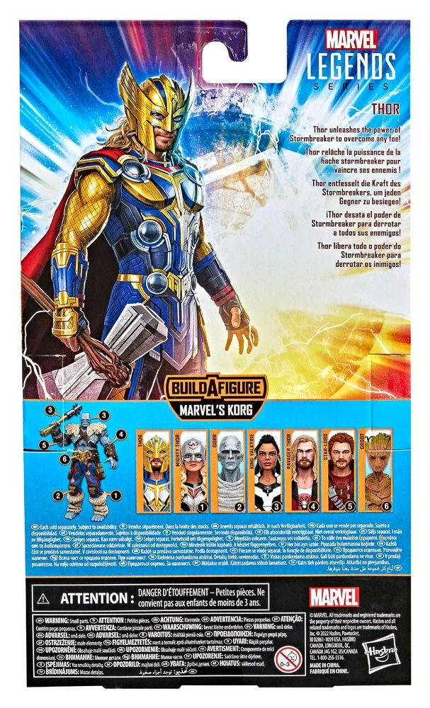 ACCESORIOS Y ARTICULACIÓN PREMIUM: Esta figura de Thor de 15 cm de la línea Marvel Legends Series presenta múltiples puntos de articulación y accesorios inspirados en las película, incluyendo su hacha, Stormbreaker .