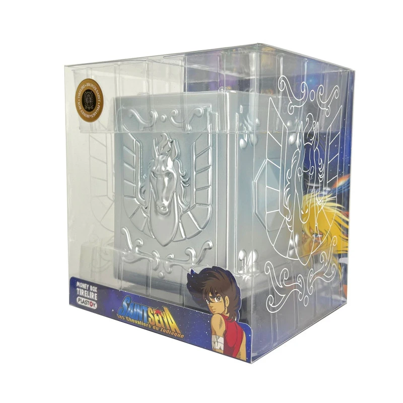 Plastoy presenta dentro de su línea de productos esta hucha con la forma de las cajas de Pandora donde los Caballeros del Zodíaco guardaban la armadura.