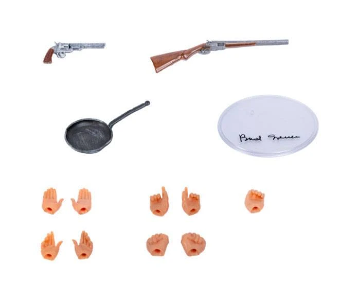La figura de acción con licencia oficial de Bud Spencer se inspiró en su papel de Bambino del clásico “Le llamaban Trinidad”. Esta figura de 18 cm de altura tiene 14 puntos de articulación y viene con accesorios adicionales, en una caja de ventana con gancho. Una base transparente con una firma impresa sujeta a Bambino a un soporte seguro con un diorama reversible de doble cara que garantiza una presentación atractiva de la figura, ya sea frente a un desierto o al fondo de una ciudad del viejo oeste.