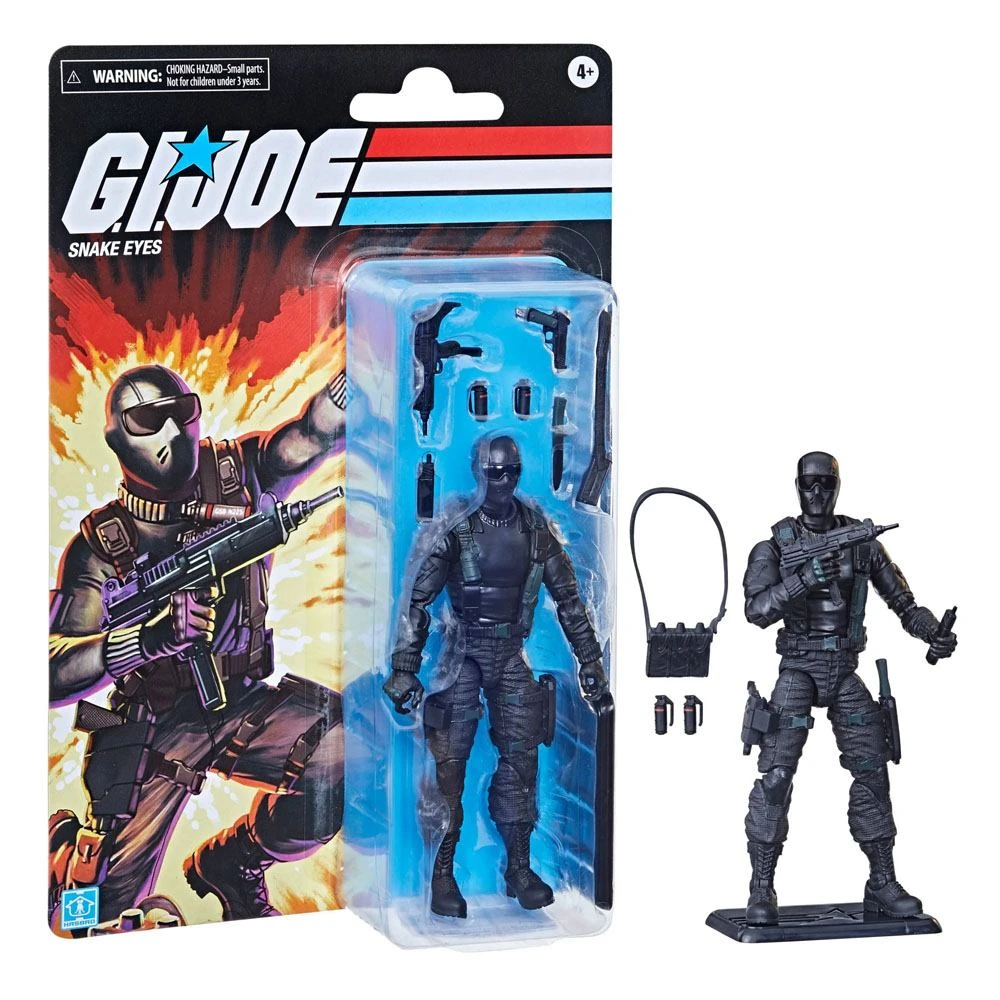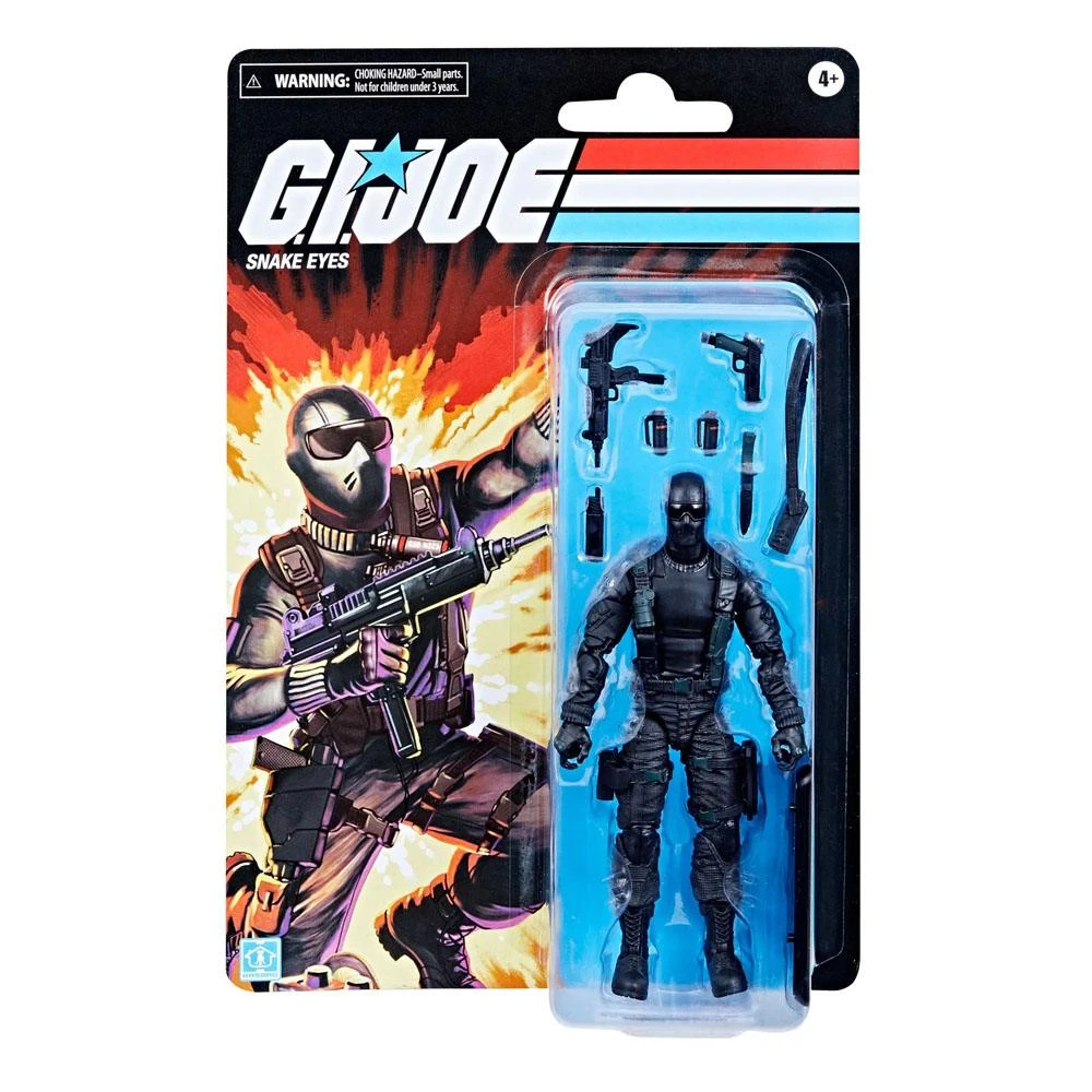 EMBALAJE INSPIRADO EN LOS CLÁSICOS: Esta figura de Snake Eyes se presenta en un embalaje con diseño inspirado en la línea de figuras de Real American Hero. (Cada una se vende por separado. Sujeto a disponibilidad.)