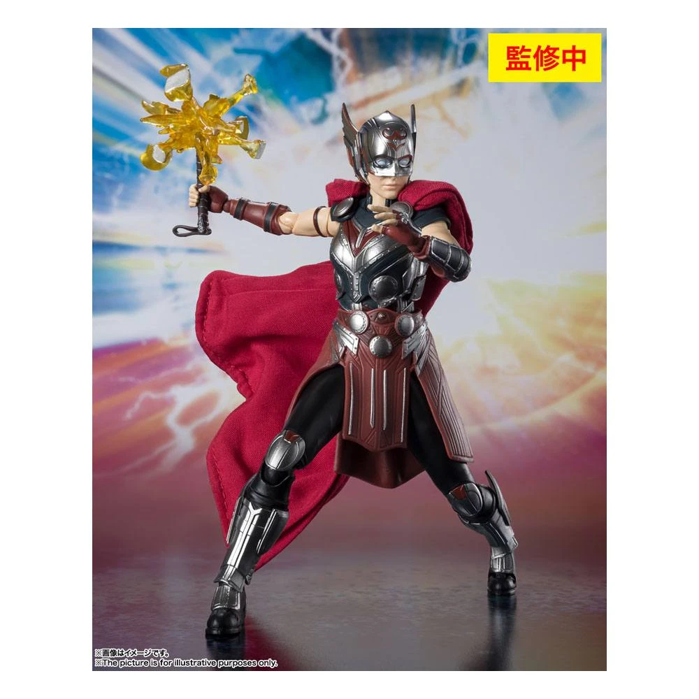 Tamashii Nations presenta para la línea S.H. Figuarts la figura de la nueva versión de Jane Foster de “Mighty Thor” basado en su apariencia en la pelicula Thor: Love & Thunder.La figura mide unos 14,5 cm e incluye un martillo Mjolnir agrietado y numerosas partes de efectos, además de una capa con cables internos, 1x cabeza opcional, 2x pares de manos opcionales, 1x Martillo (Mjolnir), 1x efecto de martillo (dividido), 1x efecto de martillo (relámpago).
