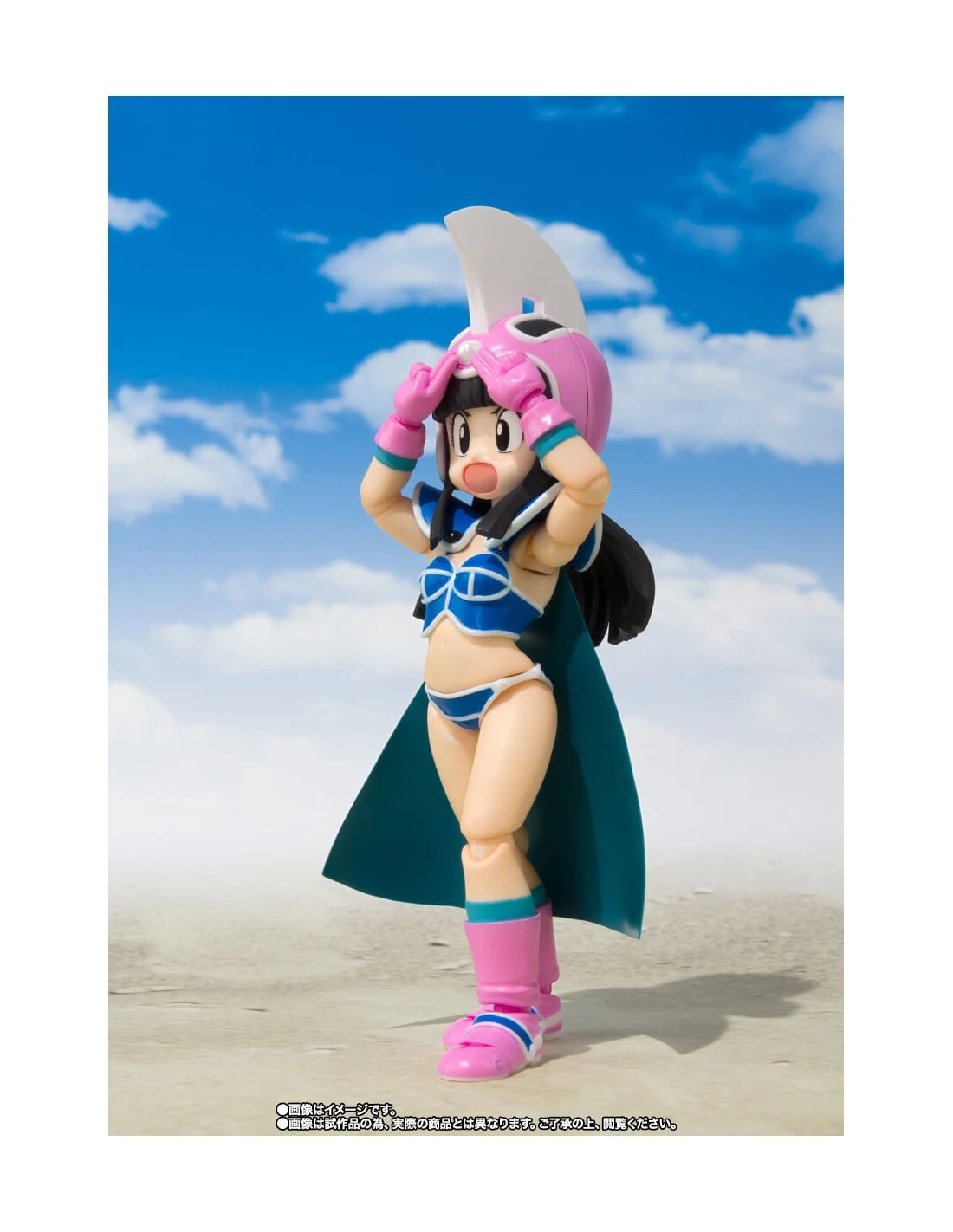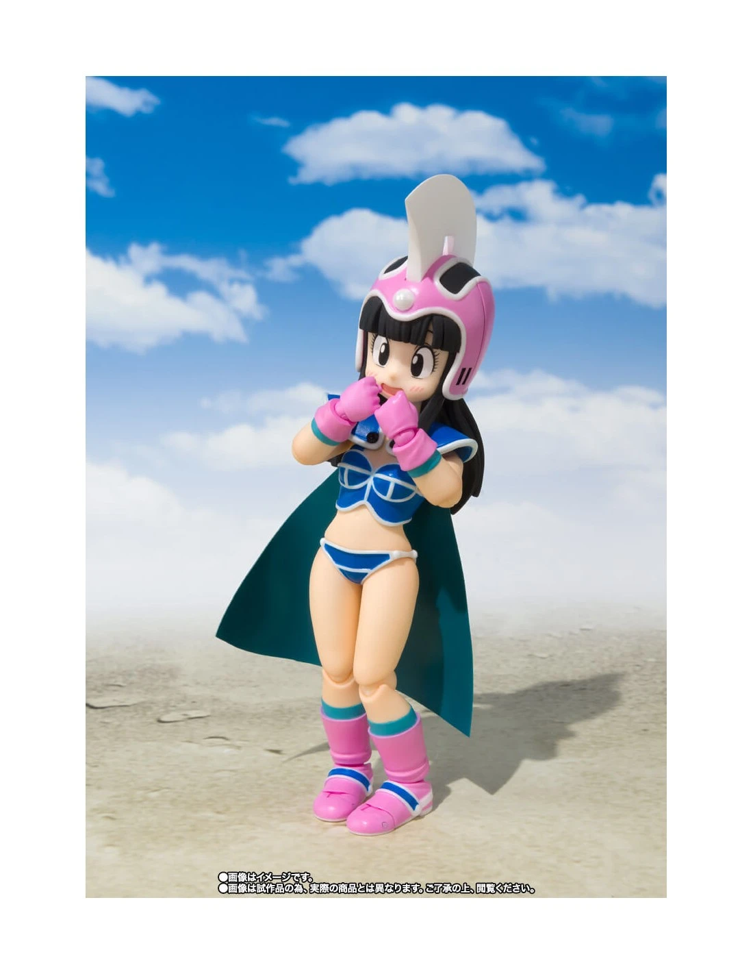 Se trata de la figura de Chichi de niña. Está hecha en PVC y mide unos 10 cm de alto e incluye 3x manos izquierdas intercambiables, 2x manos derechas intercambiables, 3x caras opcionales, 1x bola de dragón de dos estrellas y una base soporte.