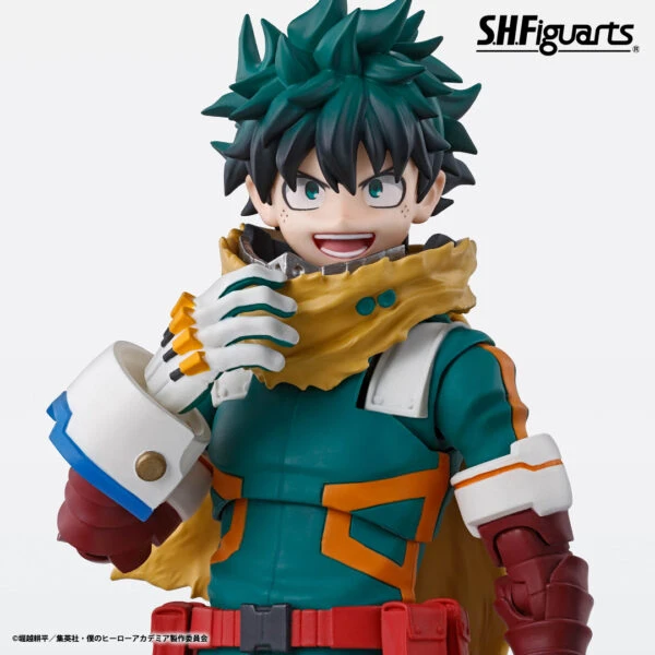 Tamashii Nations presenta, dentro de la colección S.H. Figuarts, la figura de Izuku Midoriya. Mide 14 cm y está basada en su aparición en el anime “My Hero Academia”. Contiene 5x manos (2x izquierdas y 3x derechas), 3x expresiones faciales (estándar, de combate y con efectos en los ojos) y partes del pelo.